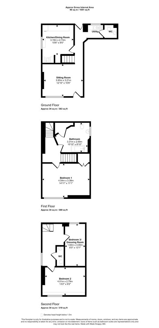 Stairs curve up to a part galleried landing with a deep silled window to the side and space for a small study area – there is access to the loft and latch doors to the bedrooms and cloakroom, which is fitted with a WC and pedestal wash hand basin.