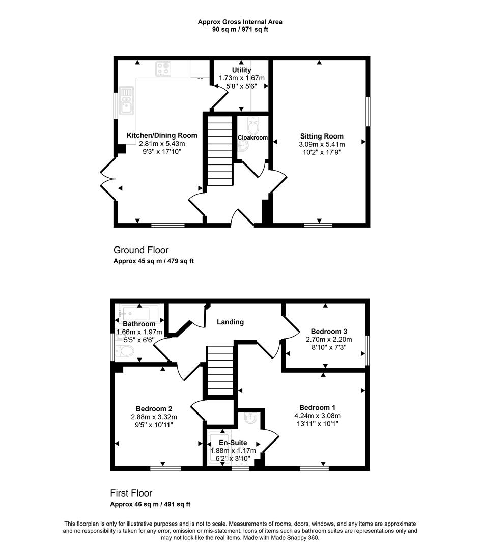 On this floor there is the family bathroom, which has a bath, WC and pedestal wash hand basin plus a study or bedroom three and two double sized bedrooms, main with an en-suite shower room.