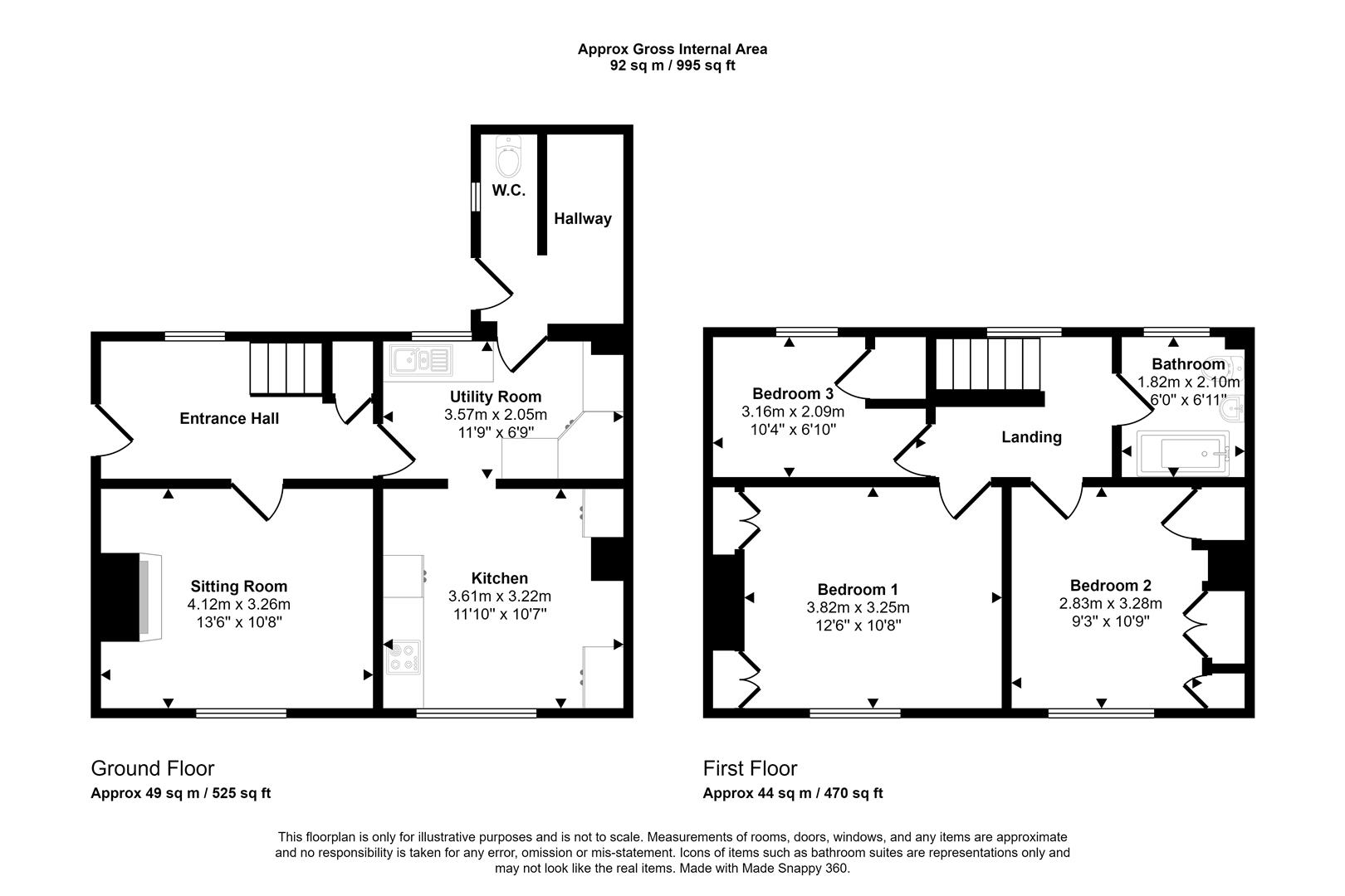 The house is of non-standard construction, providing a unique character and the potential for creative updates, therefore only suitable for cash buyers. Benefitting from an easy living layout, this home offers a spacious kitchen/diner with the added bonus of a utility room. There is also a generously sized sitting room with added character from the wood burner. For added convivence there is a downstairs WC. Upstairs, there are three good sized double bedrooms, with some countryside views and all with the added bonus of built in storage. The family bathroom offers a bath, pedestal style wash hand basin and a WC.