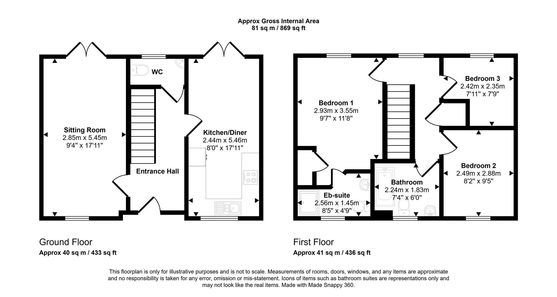 Upstairs, there are three well-sized bedrooms, including a principal bedroom with its own en-suite. A sleek family bathroom serves the remaining bedrooms.