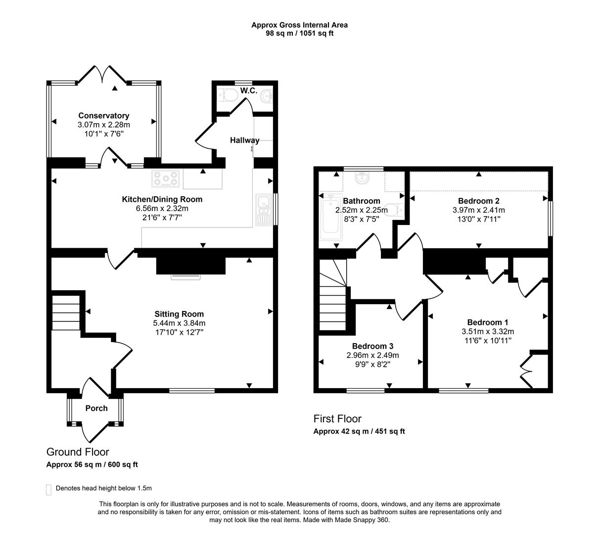 - Three Good Sized Bedrooms
