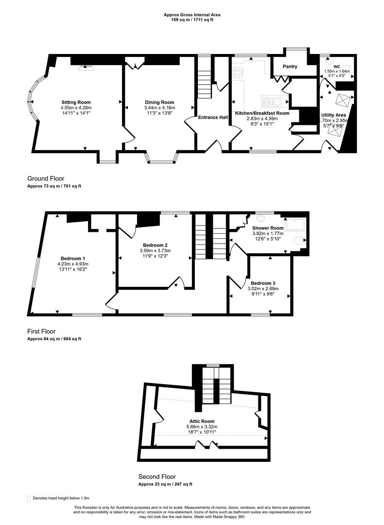 On this floor, you will find a large landing with a window and seat beneath overlooking the garden and stairs rising to the attic rooms. There is also the shower room with a wall mounted wash hand basin, WC and shower with an electric shower plus three good sized bedrooms, two with built in wardrobes.