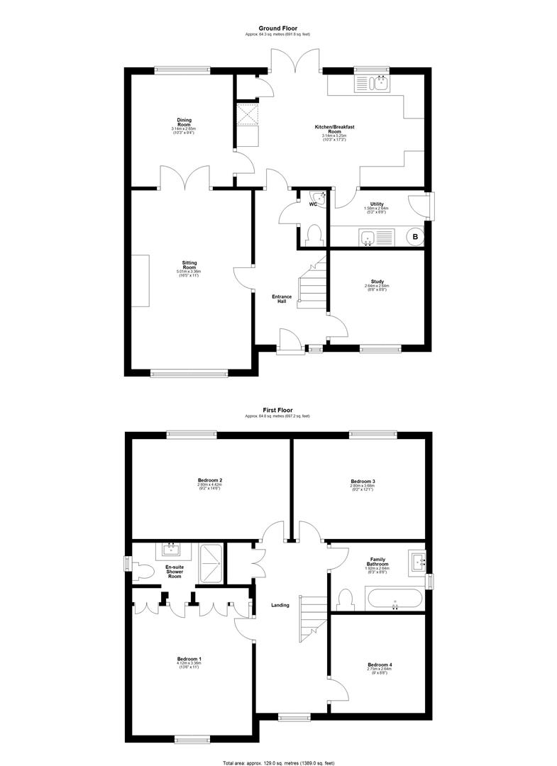 Step inside to discover four generously sized double bedrooms, including a main suite complete with built-in wardrobes and a cleverly concealed en-suite shower room. A stylish family bathroom serves the remaining bedrooms. The spacious and welcoming sitting room features a feature fireplace and flows seamlessly through double doors into the formal dining room—ideal for entertaining. A separate study provides a quiet space to work from home or read, while the large kitchen/breakfast room is the heart of the home and is ideal for meals with the family, complemented by a utility room to keep things neat and a convenient cloakroom.