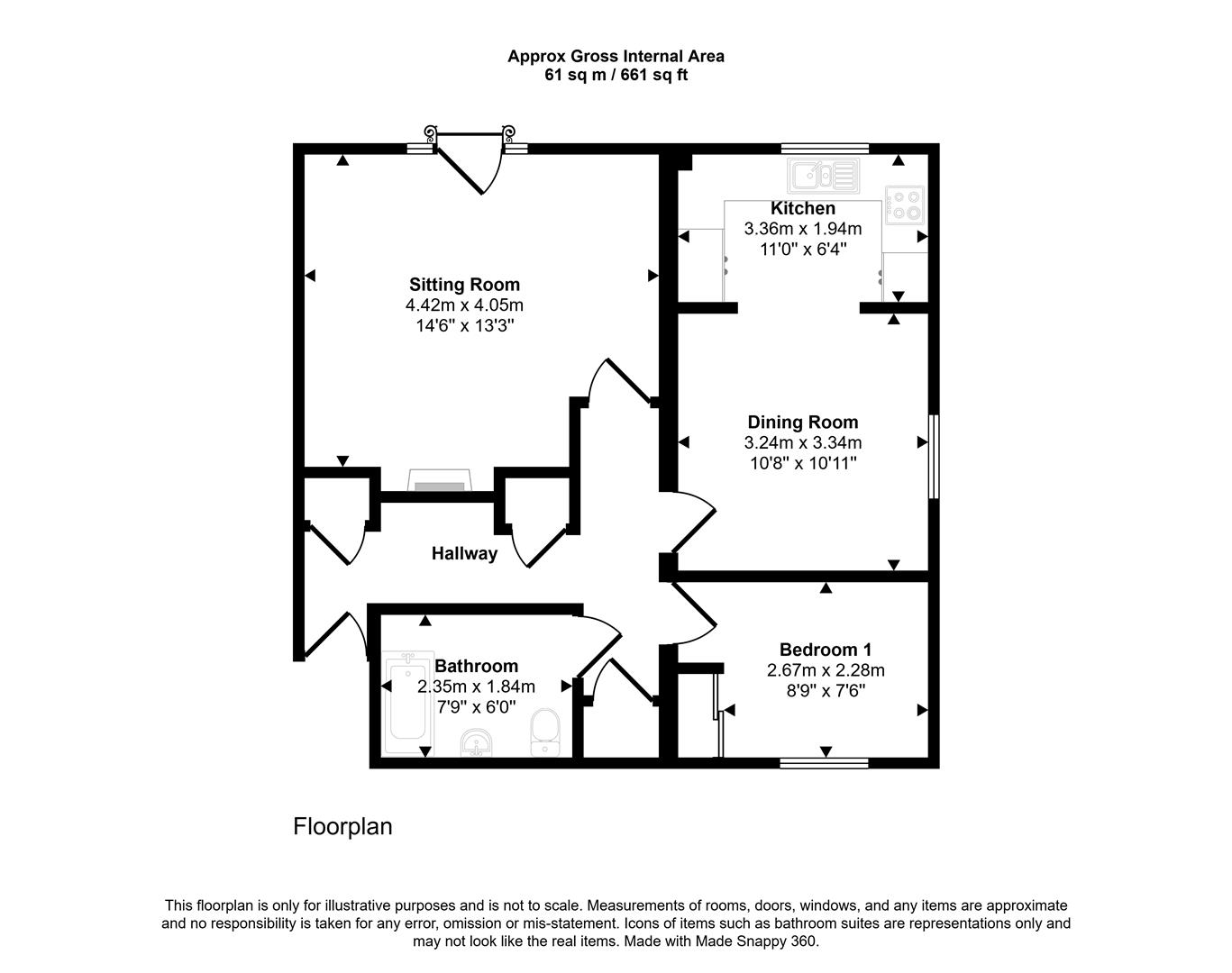 Step inside and discover flexible, well-planned living space amounting to 661 sq. ft/61 sq. m - filled with plenty of natural light. The comfortable sitting room features a charming fireplace and a Juliette balcony offering lovely winter views over the town’s meadow—perfect for quiet mornings, coffee with friends or cosy evenings. The spacious dining room, complete with a stylish square bay window, flows into a modern kitchen fitted with sleek, soft-closing units and integrated appliances. The double bedroom offers a peaceful retreat with a delightful river view, and the well proportioned, modern bathroom and generous storage space complete the picture.