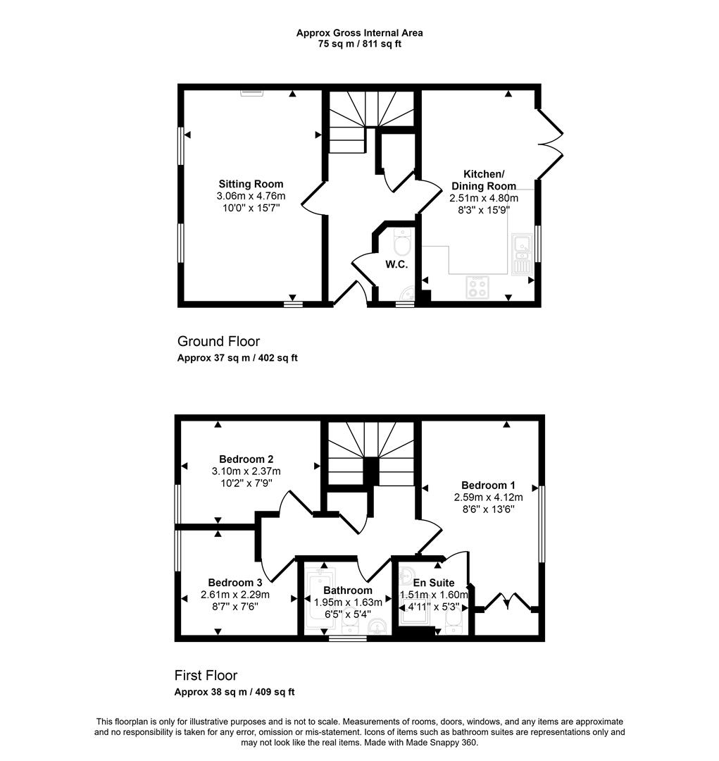 Step inside to find three bedrooms – a bright main double bedroom with fitted wardrobes and its own en-suite, a smaller double bedroom, and a comfortable single ideal for a child, guest, or even a home office. At the heart of the home, the kitchen and dining area is made for family meals and weekend baking sessions, with double doors leading straight out to the garden for easy summer dining. The spacious, light-filled sitting room with its feature fireplace is the perfect place to curl up for movie nights or cosy evenings together, while a handy downstairs cloakroom keeps family life running smoothly.