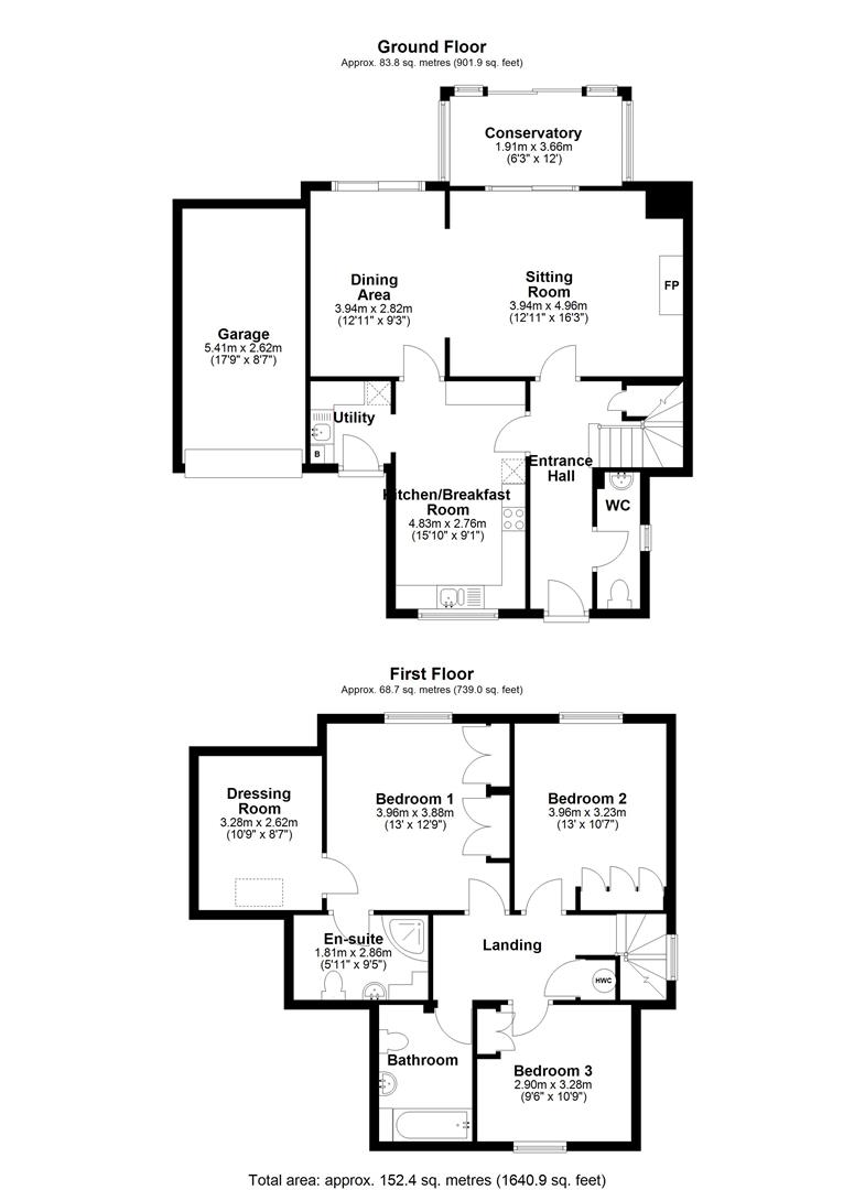 Light-filled and welcoming, the layout works effortlessly for both growing families and those looking to downsize in their leisure years without compromising on space or quality of life. The kitchen/breakfast room with adjoining utility is ideal for busy mornings and relaxed weekend cooking, while the open-plan dining and sitting room, centred around a feature fireplace, creates the perfect setting for cosy evenings or lively gatherings with family and friends. The conservatory offers potential for updating and a convenient ground floor WC completes the picture. Upstairs, three well-proportioned double bedrooms provide comfort and flexibility. The main bedroom enjoys its own en-suite shower room and a dressing room that could serve equally well as a study or nursery, while the family bathroom serves the remaining bedrooms.