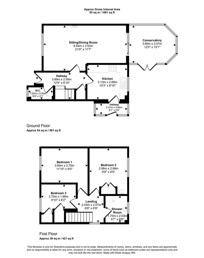 Inside, a welcoming entrance hall leads to a bright through sitting and dining room featuring a cosy feature fireplace — perfect for relaxing or entertaining with friends and family. The conservatory lets in plenty of light and has access to the rear garden, and the good-sized kitchen is ready for your culinary ideas. Upstairs, two double bedrooms and a generous single offer comfortable living space, complemented by a practical wet room.
