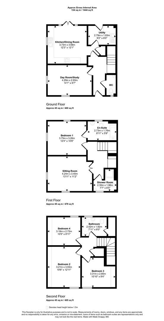 The ground floor welcomes you with a hallway leading to a large kitchen/dining room – perfect for family life and entertaining – alongside a day room that could easily be used as a study, playroom or hobby room. A cloakroom and utility room add further practicality. On the first floor you’ll find the principal bedroom with en-suite bathroom, a comfortable sitting room, and a separate shower room. The top floor provides a family bathroom and three double bedrooms, offering excellent flexibility for children, guests or even multi-generational living.