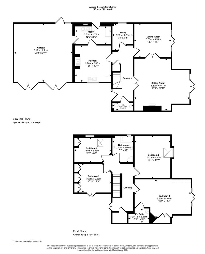 From the moment you step inside, there’s a welcoming sense of space. The large sitting room is perfect for cosy evenings, centred around a burner-style gas fire, while French doors open directly onto the garden — ideal for summer gatherings. The formal dining room also connects to the outside, with remote-controlled canopies making al fresco dining effortless whatever the weather. A dedicated study offers a quiet retreat for working from home, while the bright kitchen/breakfast room is ideal for casual meals. The cloakroom and utility room add practicality to the home. On the first floor, four double bedrooms provide space for family and guests with the main bedroom benefitting from an en-suite shower room, while the family bathroom serves the remaining rooms.