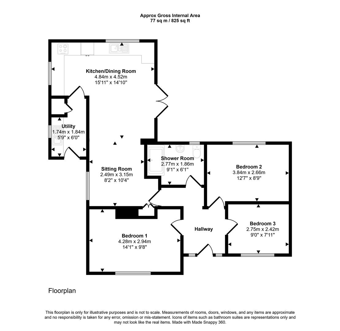 The front door opens into a well proportioned, welcoming entrance hall with doors leading off to the bedrooms, shower room and to the sitting room. There is access to the loft space and plenty of room for coats, boots and shoes. For appearance and practicality, the floor is laid in a wood effect laminate. The sitting room provides a delightful cosy place for entertaining or watching television and has a useful built in storage cupboard. It opens into the bright and spacious kitchen and dining area.