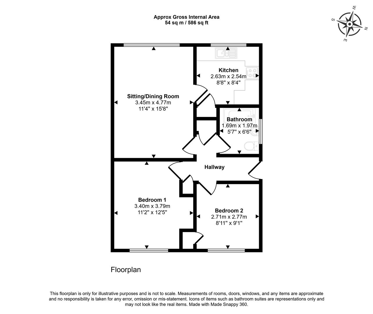 The main entrance lies to the side of the bungalow - the door opens into an L shaped entrance hall with access to the loft space and the airing cupboard, which houses the hot water cylinder. There is also a useful store cupboard and doors leading off to the bedrooms, bathroom and the sitting/dining room. The generously sized sitting/dining room enjoys plenty of natural light from the large bow window that overlooks the front garden. There is a wall mounted cabinet and storage unit. A door opens into the kitchen.