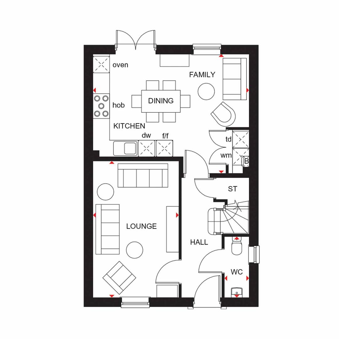 The front door opens into the entrance hall with doors leading off to all rooms. You will find the cloakroom, which is fitted with a WC and pedestal wash hand basin, along with a spacious under stairs storage cupboard suitable for coats, boots and shoes. The floor is laid in a practical and attractive wood effect laminate that continues through the ground floor. The spacious sitting room has plenty of space for settees and armchairs.