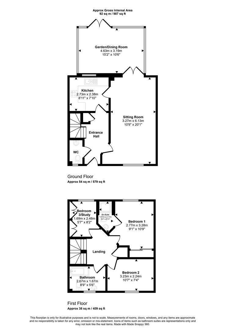 Stairs rise and curve up to the good sized, bright landing with access to the loft space and cupboard housing the gas fired central heating boiler plus white panelled doors to the bedrooms and main bathroom. The bathroom is fitted with a modern suite consisting of pedestal wash hand basin, WC and bath with a mixer tap and shower attachment. There are three bedrooms, the single bedroom is set out as a study and benefits from built in cupboards and the other two bedrooms are both double sized with the main bedroom having built in wardrobes and an en-suite shower room.