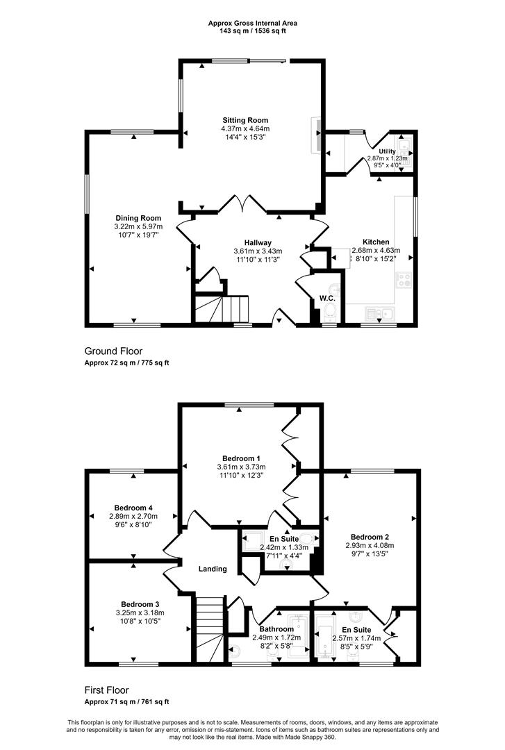There are four double bedrooms, two with their own en-suites, plus a main bathroom—ideal for growing families or welcoming guests. Downstairs, the spacious entrance hall leads to two versatile reception rooms, a bright kitchen, and from the kitchen, a handy utility room, and there is also a cloakroom.