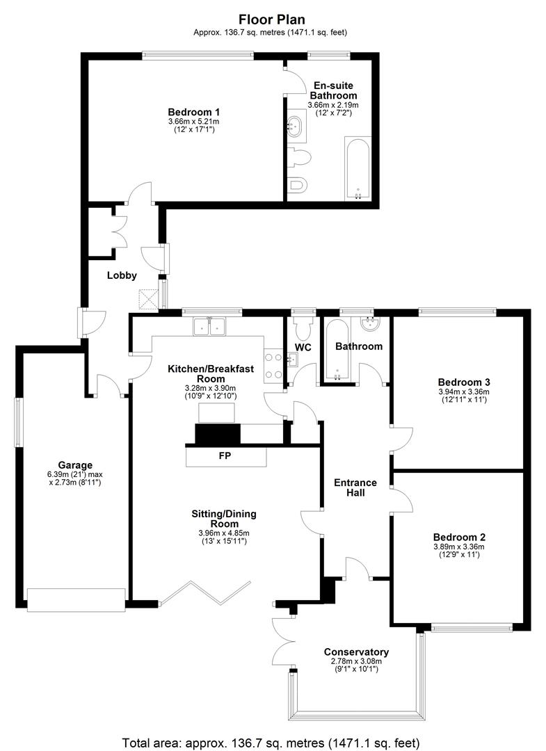 The accommodation is arranged to take advantage of the views, with a bright front conservatory and a well proportioned reception room featuring tri-fold doors and a log burner. There are three double bedrooms, including a principal bedroom with en-suite, along with a separate family bathroom.