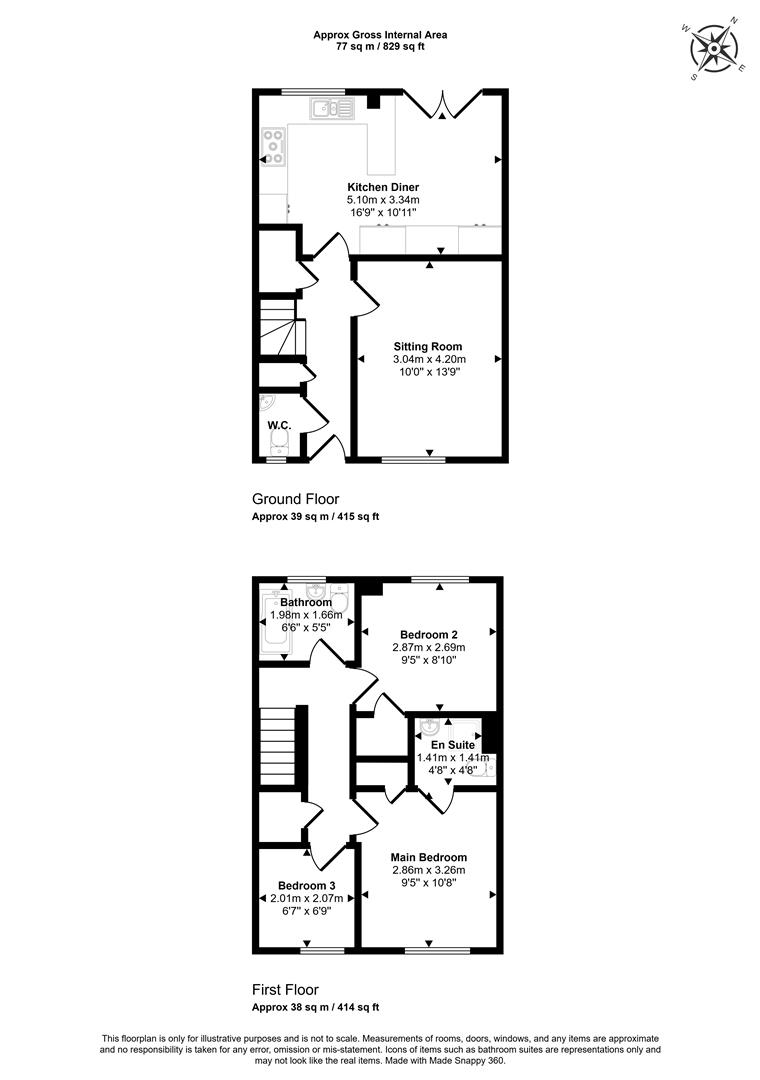 The accommodation is well suited to modern living with a spacious kitchen/dining room opening directly onto the garden, a comfortable sitting room and three bedrooms on the first floor including a main bedroom with en-suite facilities. The property also benefits from useful storage throughout together with gas fired central heating and uPVC double glazing.