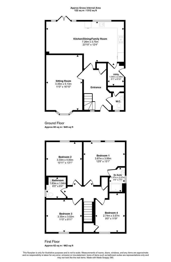 The front door opens into a spacious and inviting entrance hall with stairs rising to the first floor and doors leading off to the cloakroom, kitchen/dining/family room and to the sitting room. The generously sized sitting room has a bay window to the front and plenty of space for settees and chairs.