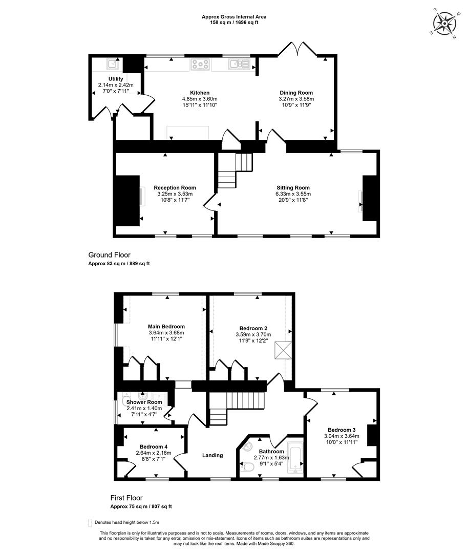 The property offers generous and flexible accommodation extending to approximately 1,696 sq ft, arranged over two floors and well suited to a variety of buyers. The ground floor provides a good balance of reception space, including a spacious sitting room with a character fireplace and wood-burning stove, alongside further reception rooms which offers flexibility for family living, home working or additional entertaining space. The kitchen is traditional in style and opens into the dining room, creating a sociable layout that forms the heart of the home, with direct access to the garden and a natural connection between inside and out. A separate utility room further supports the practical layout.