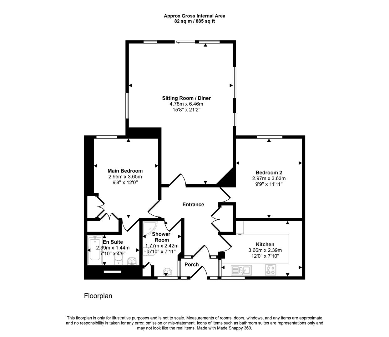 The property has been recently improved and provides well balanced living space, with a triple aspect sitting/dining room and doors opening onto the garden, creating a light and inviting environment with a natural connection to the outside space. The kitchen is well equipped, while the principal bedroom benefits from built-in wardrobes and an en-suite shower room. The second bedroom is served by a separate shower room, with all rooms arranged off a central entrance hall.