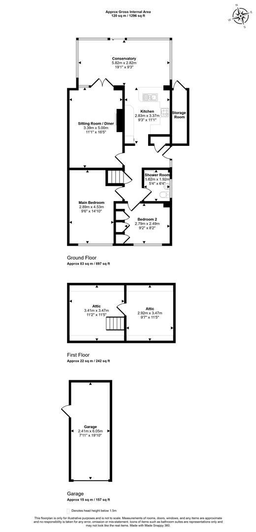 A welcoming entrance hall leads through to the principal rooms, with steps rising to a useful attic storage room. A comfortable sitting room enjoys a feature fireplace with marble surround and a coal effect gas fire. The kitchen is fitted with light wood grain effect units and generous work surfaces with space for a cooker and white goods, leading through to the wonderful garden room beyond, which enjoys lovely views over the rear garden with a sliding patio door opening directly outside.